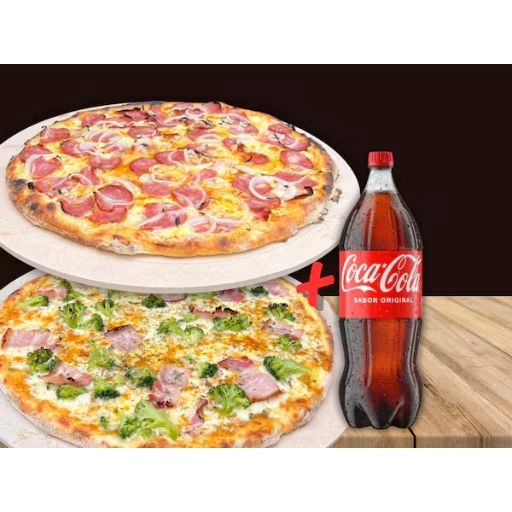 Escolha 2 pizzas tamanho G + refrigerante 2l, podendo cada pizza ser 2 sabores.
