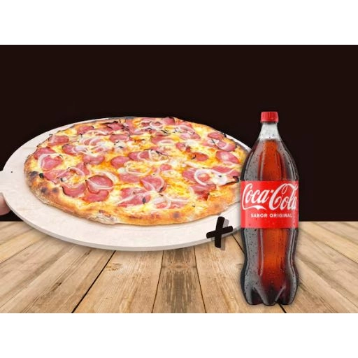 Combo com pizza tamanho G + 1 refrigerante 2l, podendo escolher até 2 sabores.